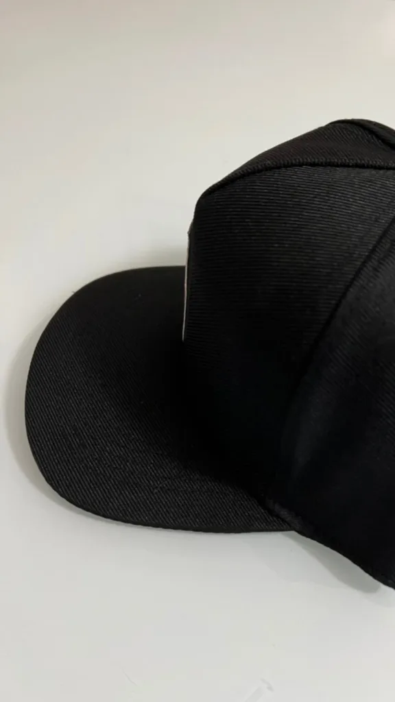 O boné está disponível na cor preta, um tom versátil e fácil de combinar com diversos looks.